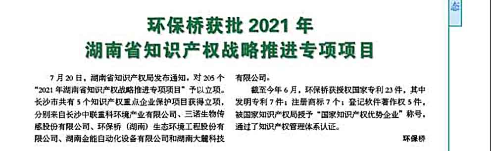 截至2021年6月,環(huán)保橋獲授權(quán)國(guó)家專(zhuān)利23件,其中發(fā)明專(zhuān)利7件;注冊(cè)商標(biāo)7個(gè);登記軟件著作權(quán)5件,被國(guó)家知識(shí)產(chǎn)權(quán)局授予“國(guó)家知識(shí)產(chǎn)權(quán)優(yōu)勢(shì)企業(yè)”稱(chēng)號(hào),通過(guò)了知識(shí)產(chǎn)權(quán)管理體系認(rèn)證。